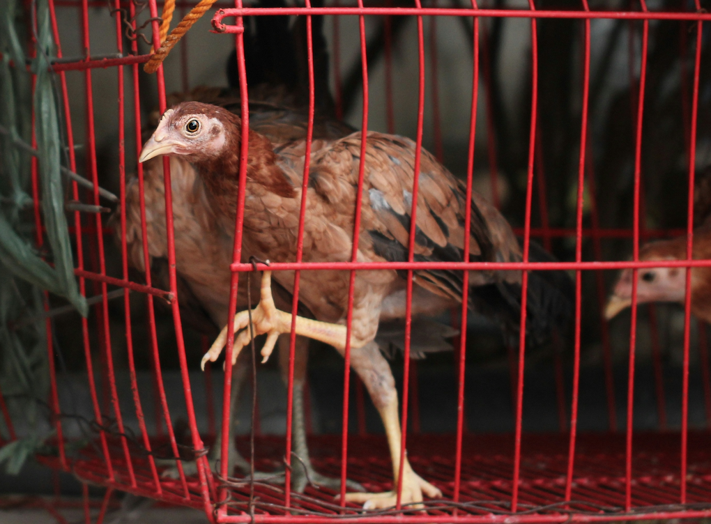 Inside these markets, animals are crammed into cages stacked on top of one another, left to suffer as filth and feces from those above them rain down onto their feathers and bodies. They have nowhere to escape the stench, the waste, or the terror of what awaits them. Many hear the cries of others being slaughtered or witness the killing firsthand, creating immense psychological distress. These conditions not only inflict needless suffering on these innocent animals but also create a breeding ground for deadly zoonotic diseases.